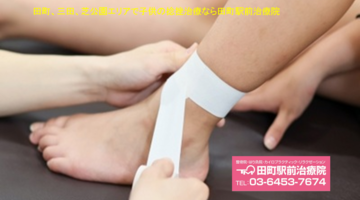 捻挫してしまったら!田町駅西口から徒歩3分、三田駅A3,A7出口から徒歩30秒の田町駅前治療院へ早めにご相談ください。的確な治療で一日も早く復帰すること、そして後遺症が残らないように的確に治療いたします。自己判断せずに早めに処置をすれば後に残さずシッカリと治せます。必要であれば提携のドクターもご紹介いたします。